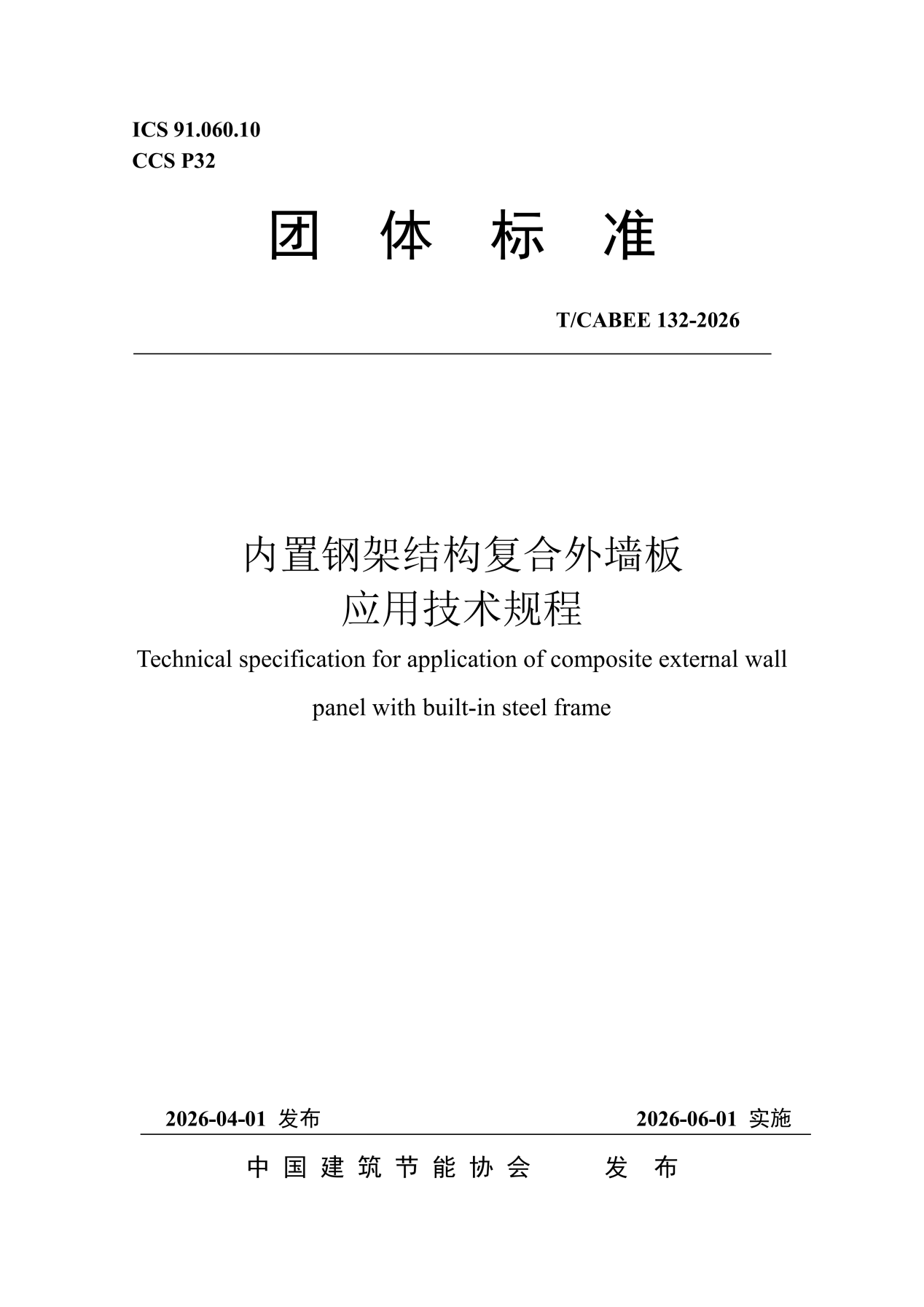 【标准文本】TCABEE 132-2026《内置钢架结构复合外墙板应用技术规程》.pdf